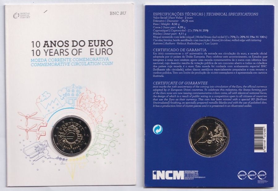 Portugal 2 Euro 2012 - Coincard -10 Jahre Euro-Bargeld - OVP