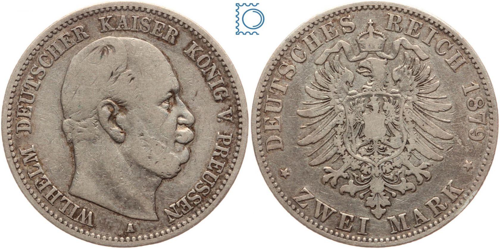 PREUSSEN, 2 Mark 1879 A, Wilhelm I. (1861-1888), Jg. 96