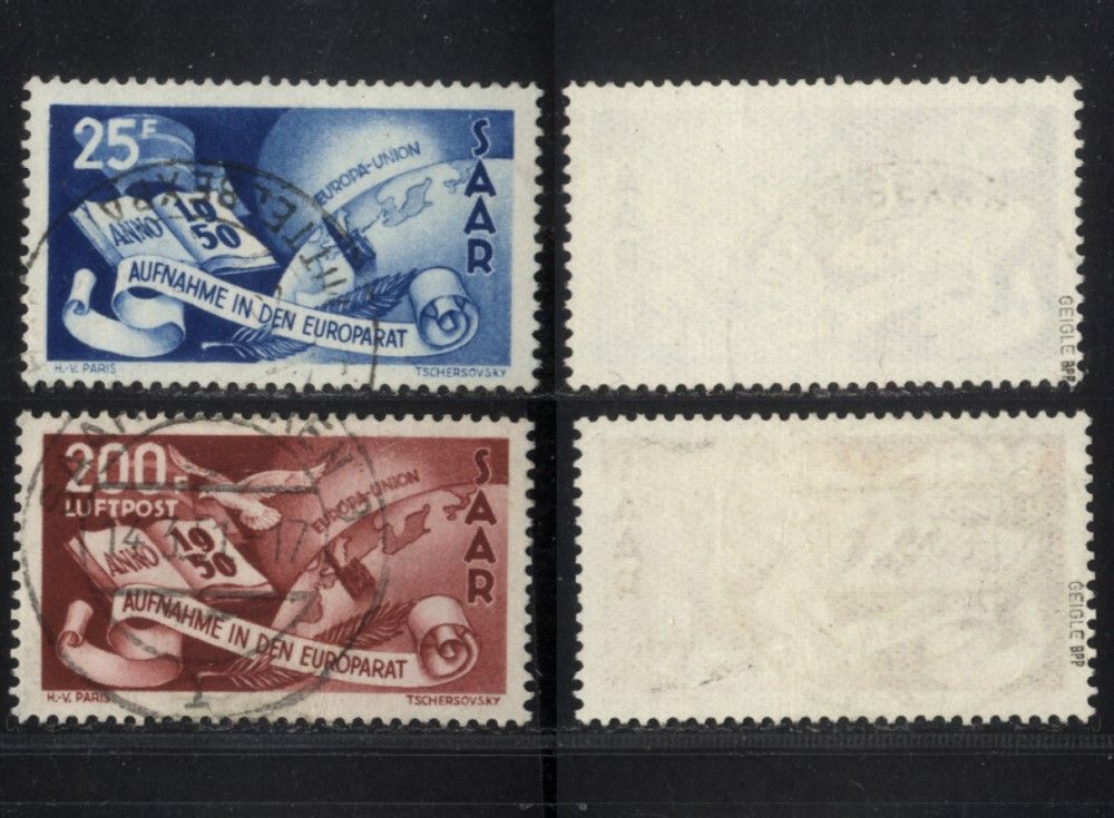Saarland Michel Nr. 297-298 gestempelt, geprüft Geigle BPP - Europarat