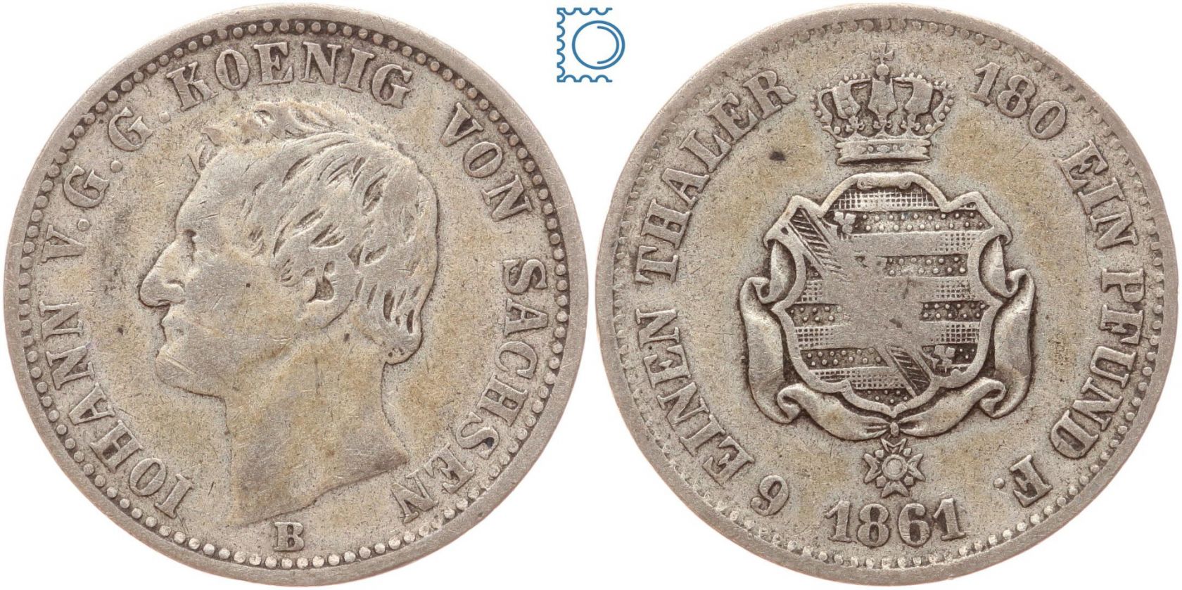 Sachsen, 1/6 Taler 1861 B, König Johann 1854-1873, J.113, Silber