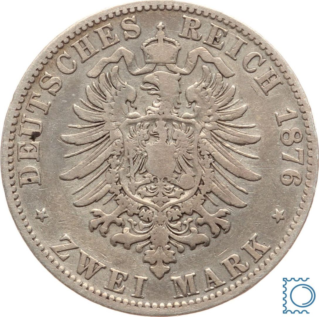 SACHSEN, 2 Mark 1876 E, König Albert (1873-1902), J.121