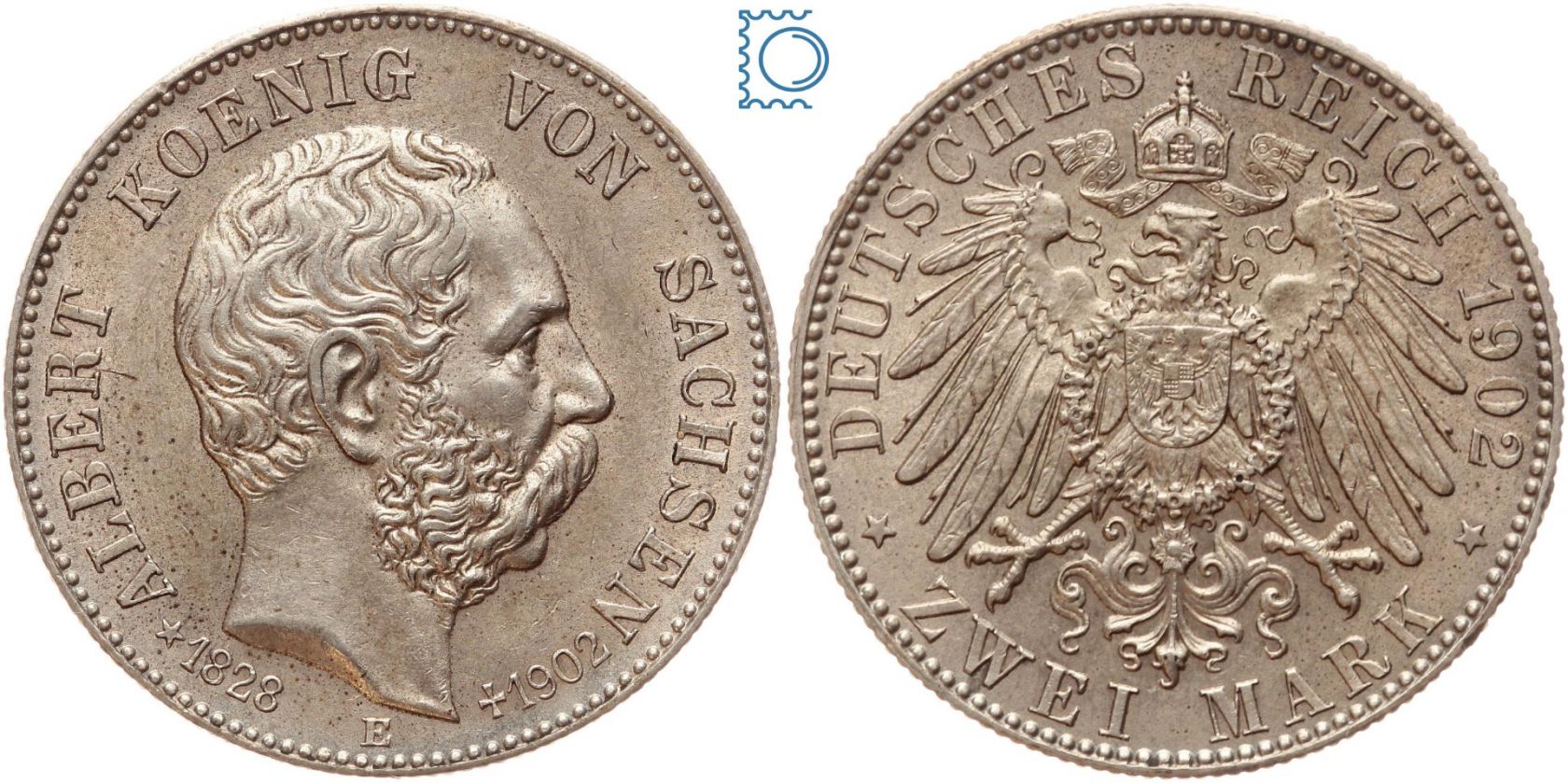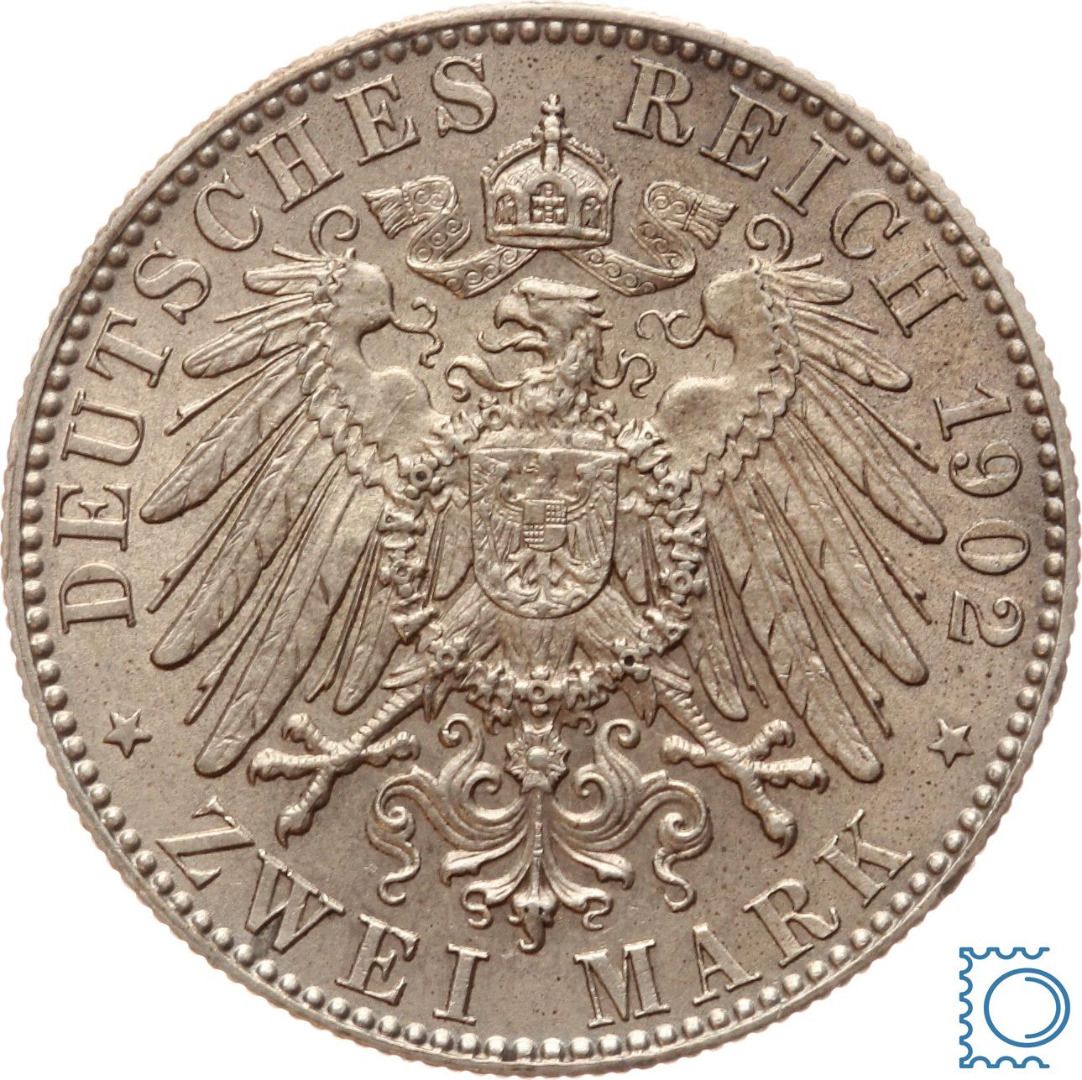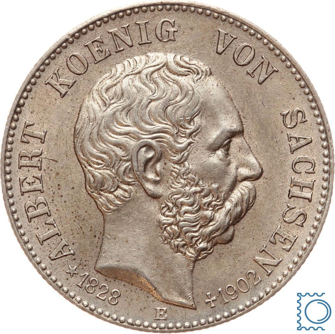 SACHSEN, 2 Mark 1902 E, Auf den Tod von König Albert, Silber