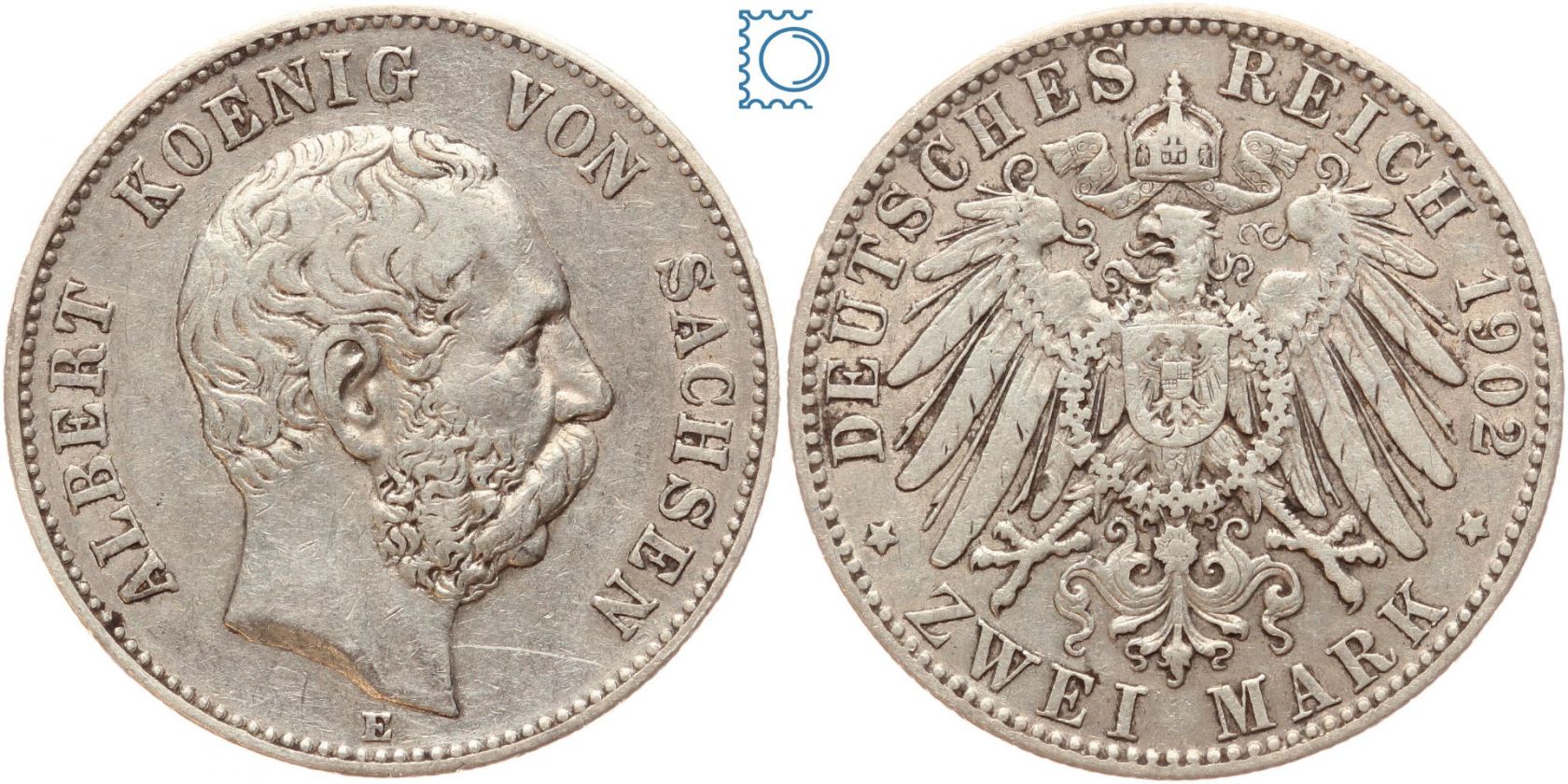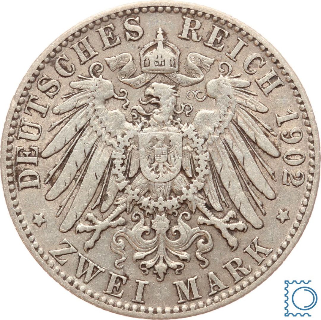 SACHSEN, 2 Mark 1902 E, Jaeger 124, Silber