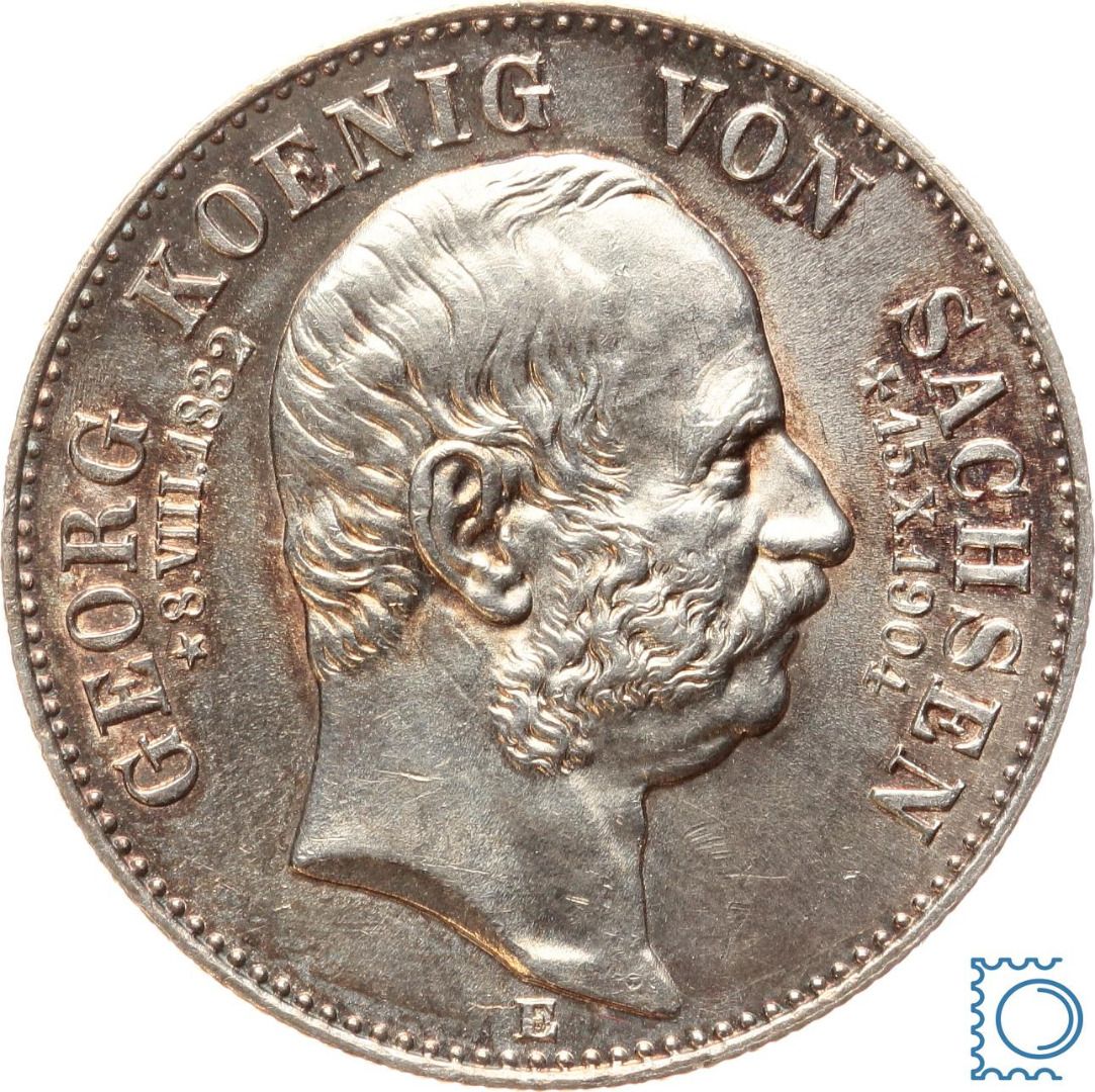 SACHSEN, 2 Mark 1904 E, Auf den Tod von König Georg, Silber Jäger 132