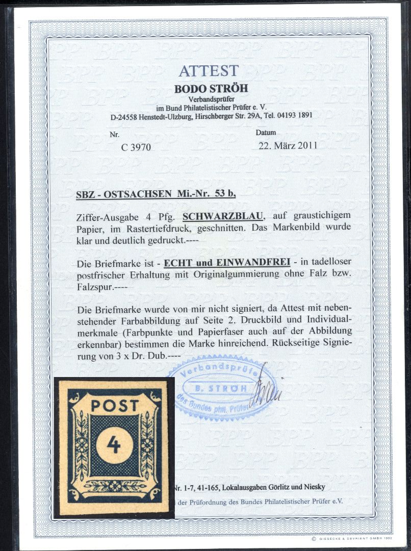 SBZ Ost-Sachsen Michel Nr. 53 b postfrisch geprüft, Attest Ströh BPP