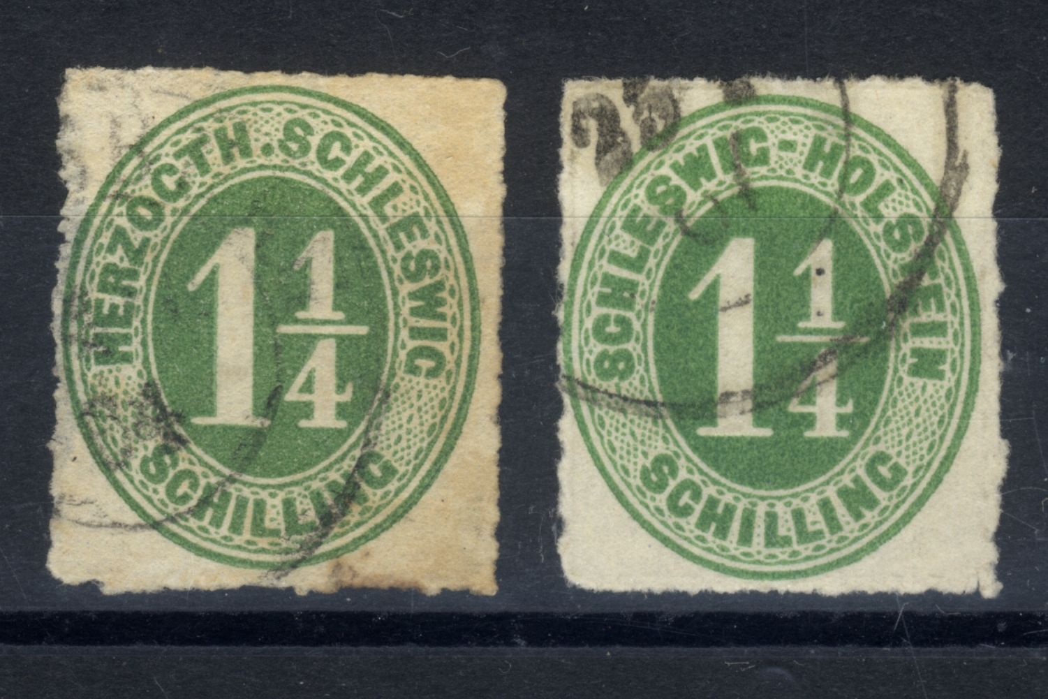 Schleswig Schleswig-Holstein 1864 | 2x MiNr. 4 gestempelt - 1 1/4 Schilling grün