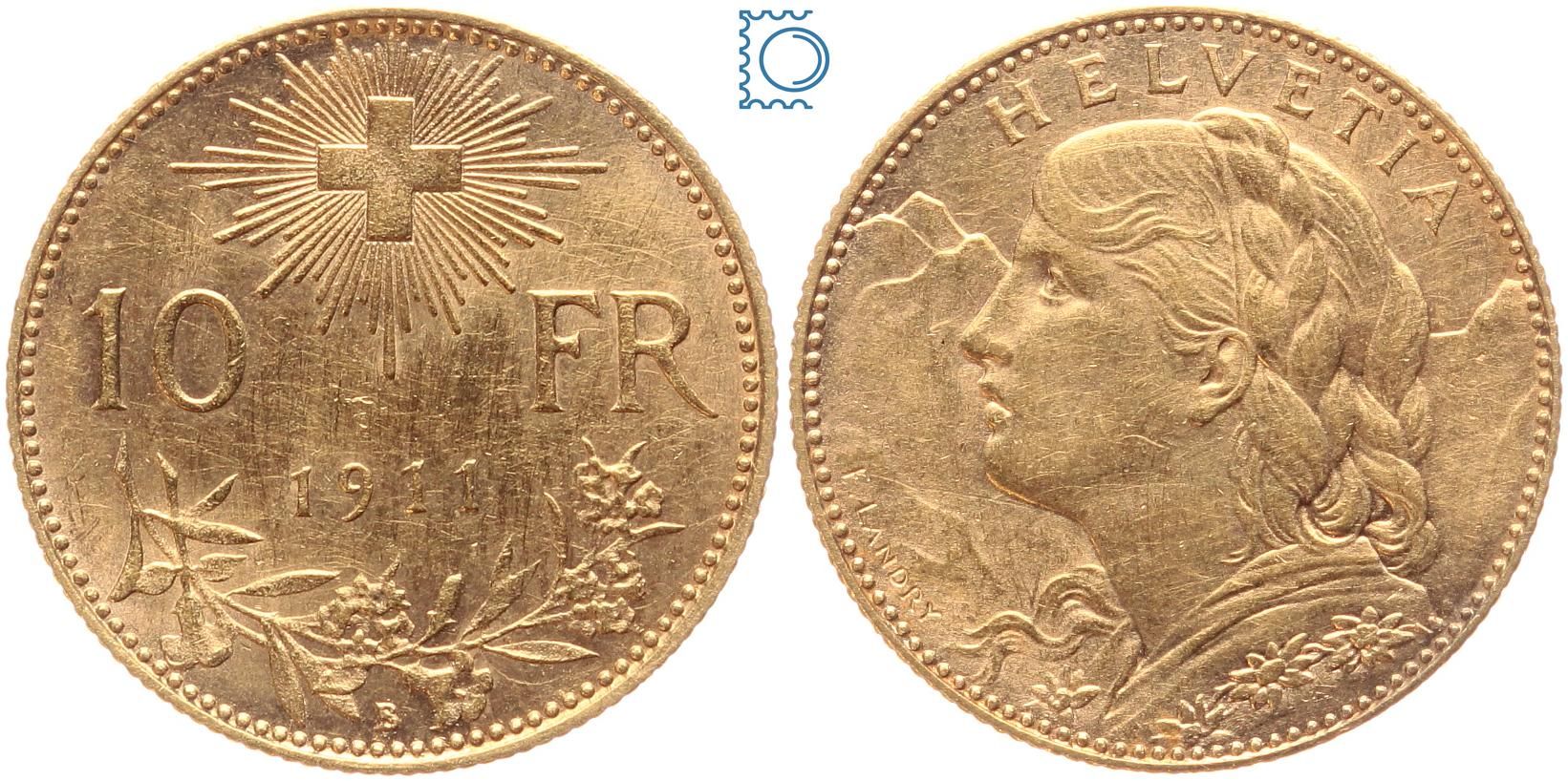 SCHWEIZ 10 Franken 1911 B | Vreneli | seltener Jahrgang
