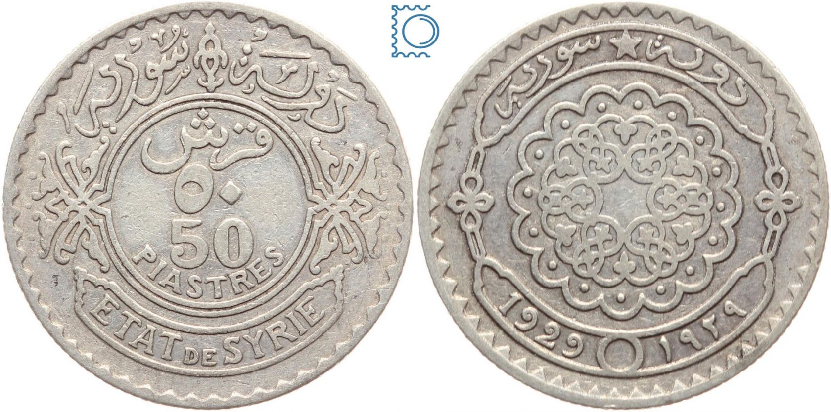 Syrien 50 Piaster 1929 Silber | 50 Piastres État de Syrie