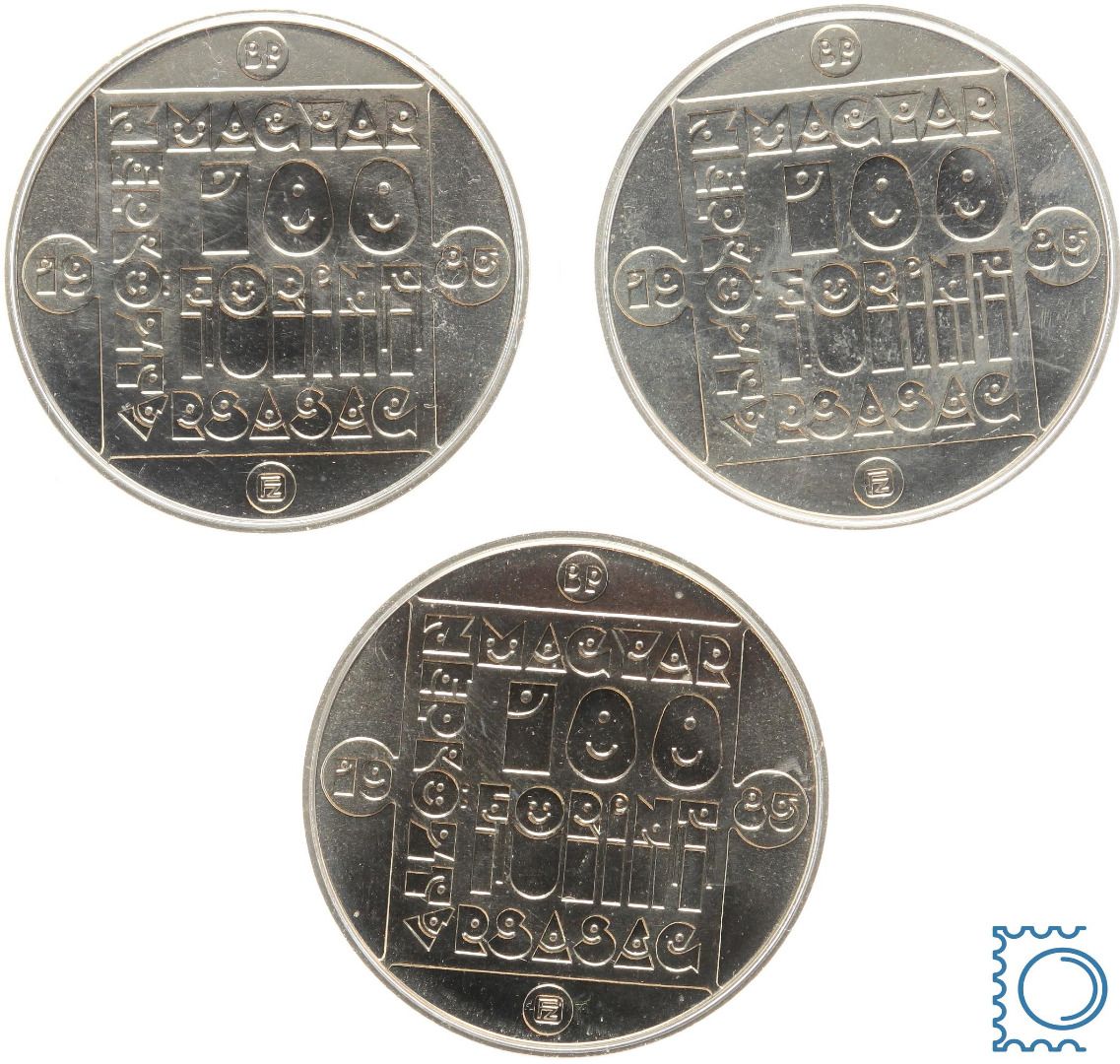 Ungarn 3 x 100 Forint, Wildlife Preservation, Wildkatze, Schildkröte, Fischotter