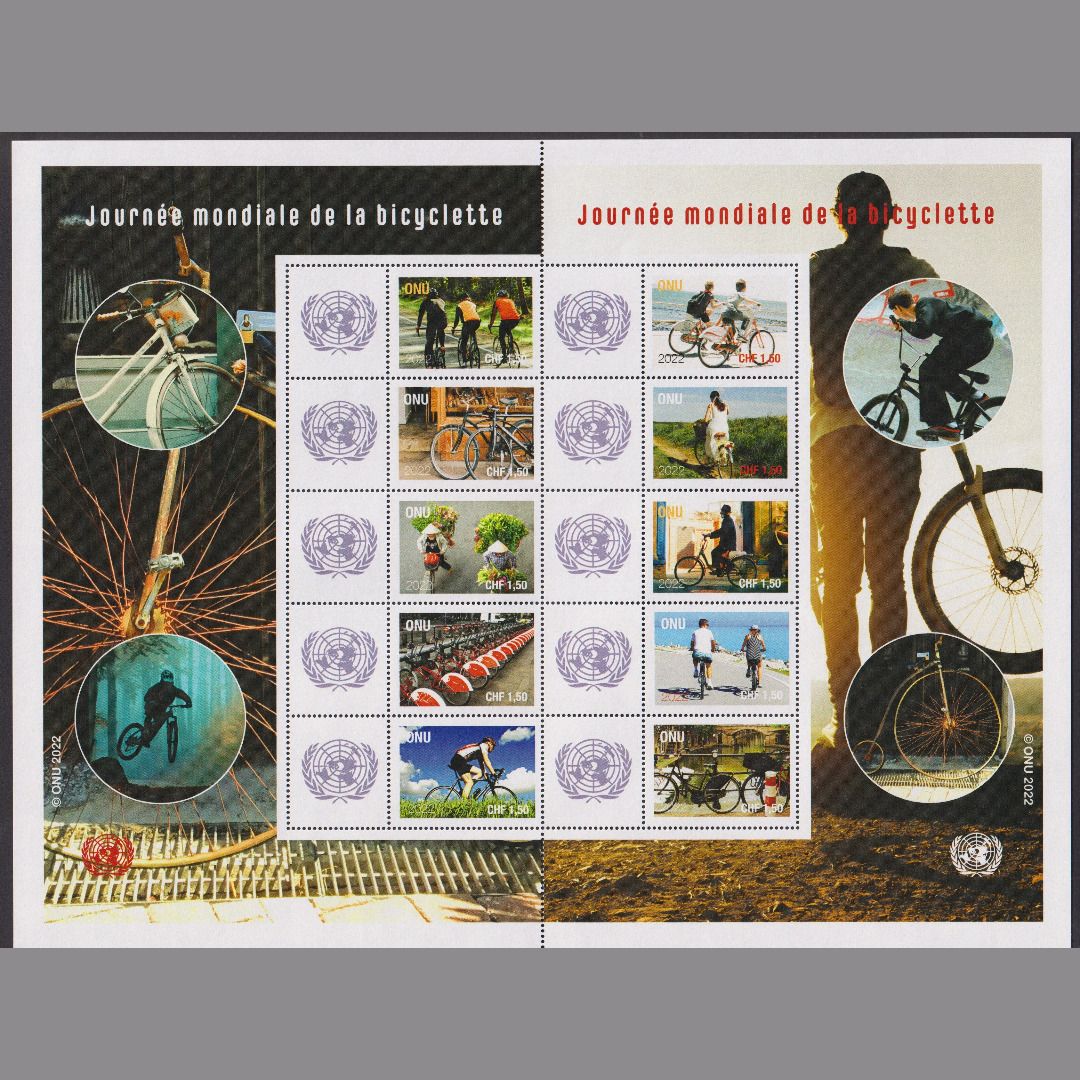 Uno Genf 2022 MiNr. 1174-1183 Kleinbogen postfrisch - Grußmarken: Weltfahrradtag