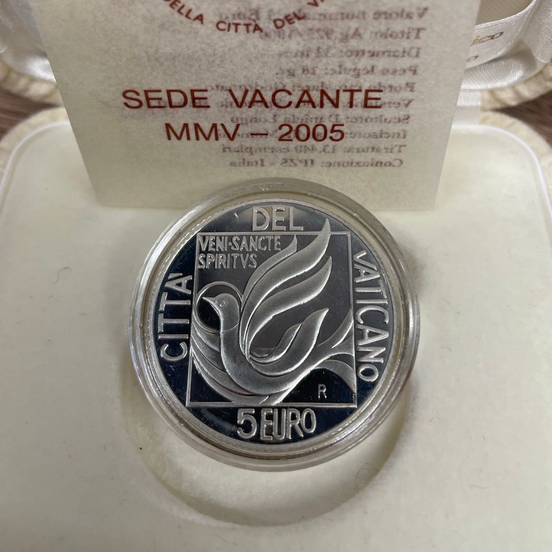 Vatikan 5 Euro 2005 PP - Sede Vacante - Silber Box CoA
