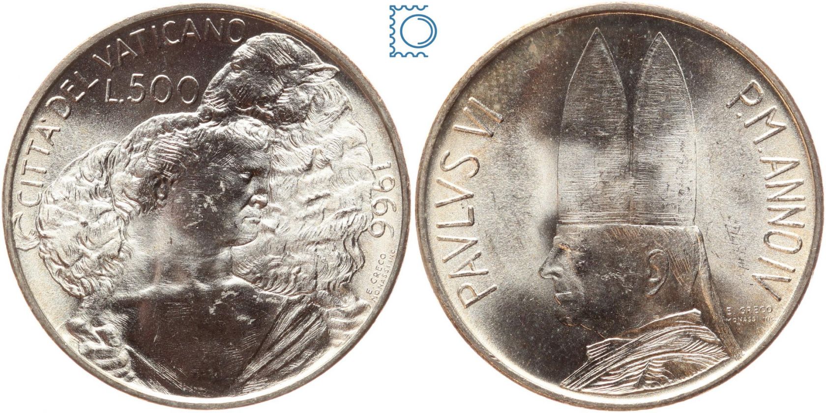 Vatikan, Vatikanstadt, 500 Lire 1966 - Paul VI - Silber