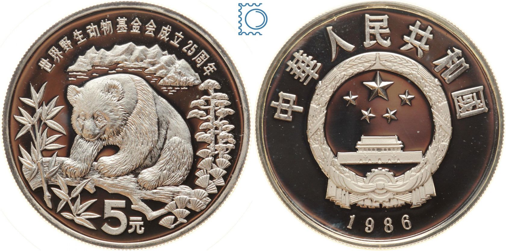 VOLKSREPUBLIK CHINA - ¥5 YUAN 1986 PP - 大熊猫 GIANT GROSSER PANDA - 900 Silber WWF