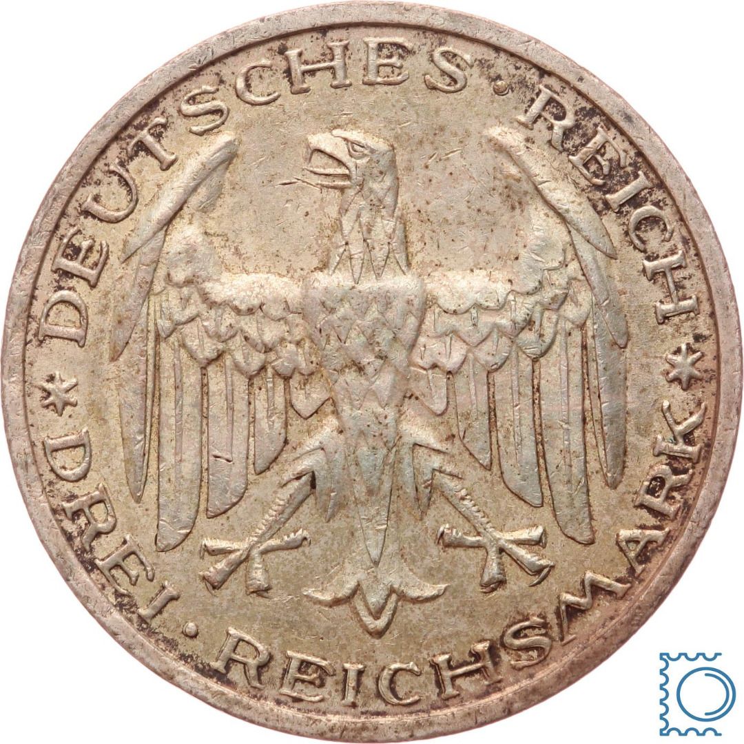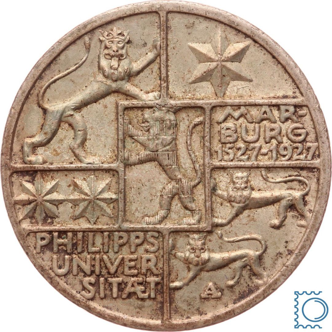 Weimar 3 Mark 1927 A, 400 Jahre Universität Marburg, J.330, Silber