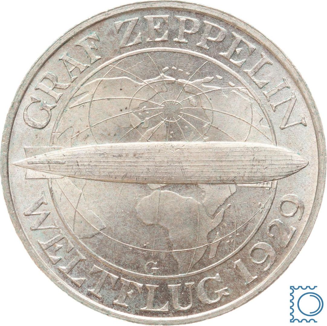 Weimar 3 Mark 1930 G | Graf Zeppelin Weltflug | J.342, Silber