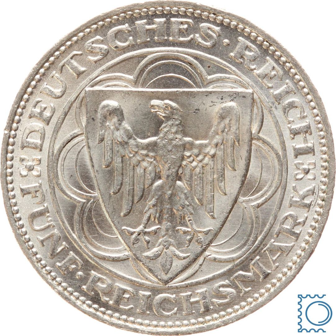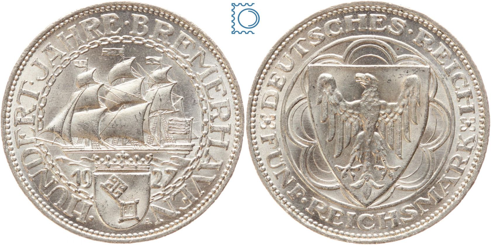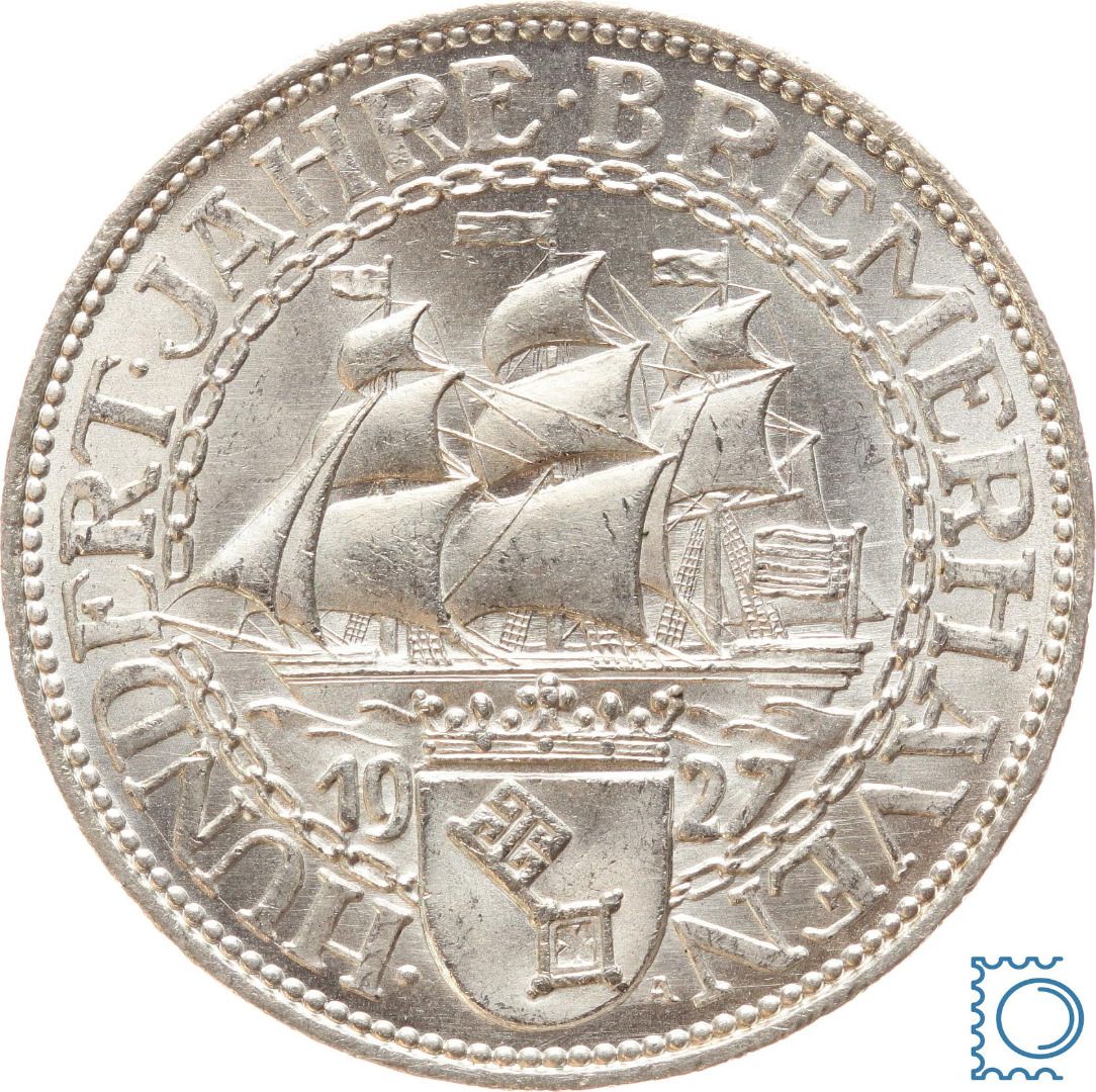 Weimar 5 Mark 1927 A, Bremerhaven, J.326, Silber