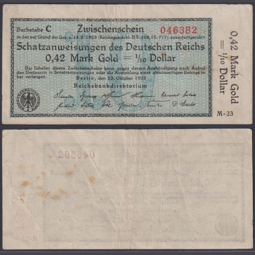 Wertbeständiges Notgeld 0,42 Mark Gold = 1/10 Dollar WBN-15a Ro.139a 1923