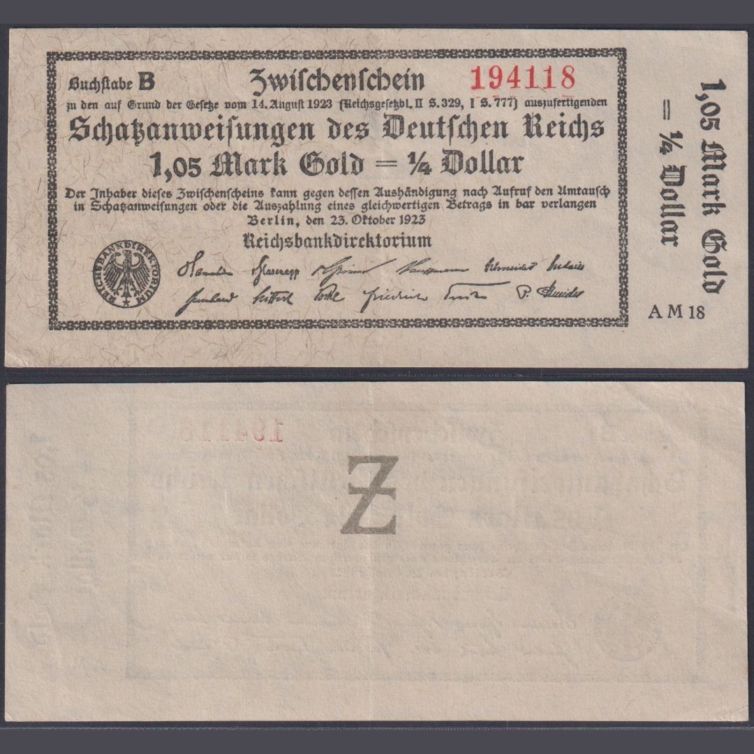 Wertbeständiges Notgeld 1,05 Mark Gold = 1/4 Dollar WBN-16f Ro.140a 1923