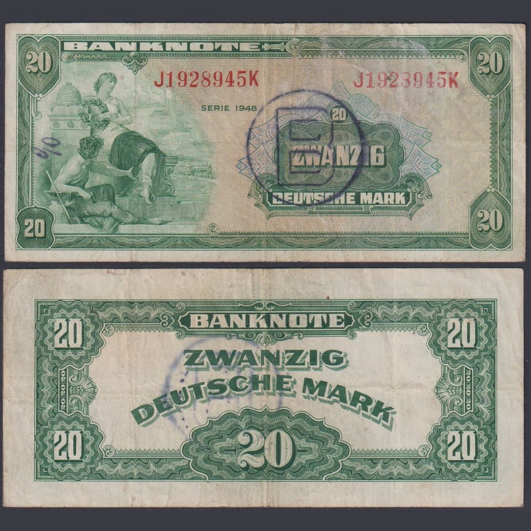 Westberlin Ausgaben 20 DM WBZ-18a Ro.241a P#6b-d 1948 Bank Deutscher Länder