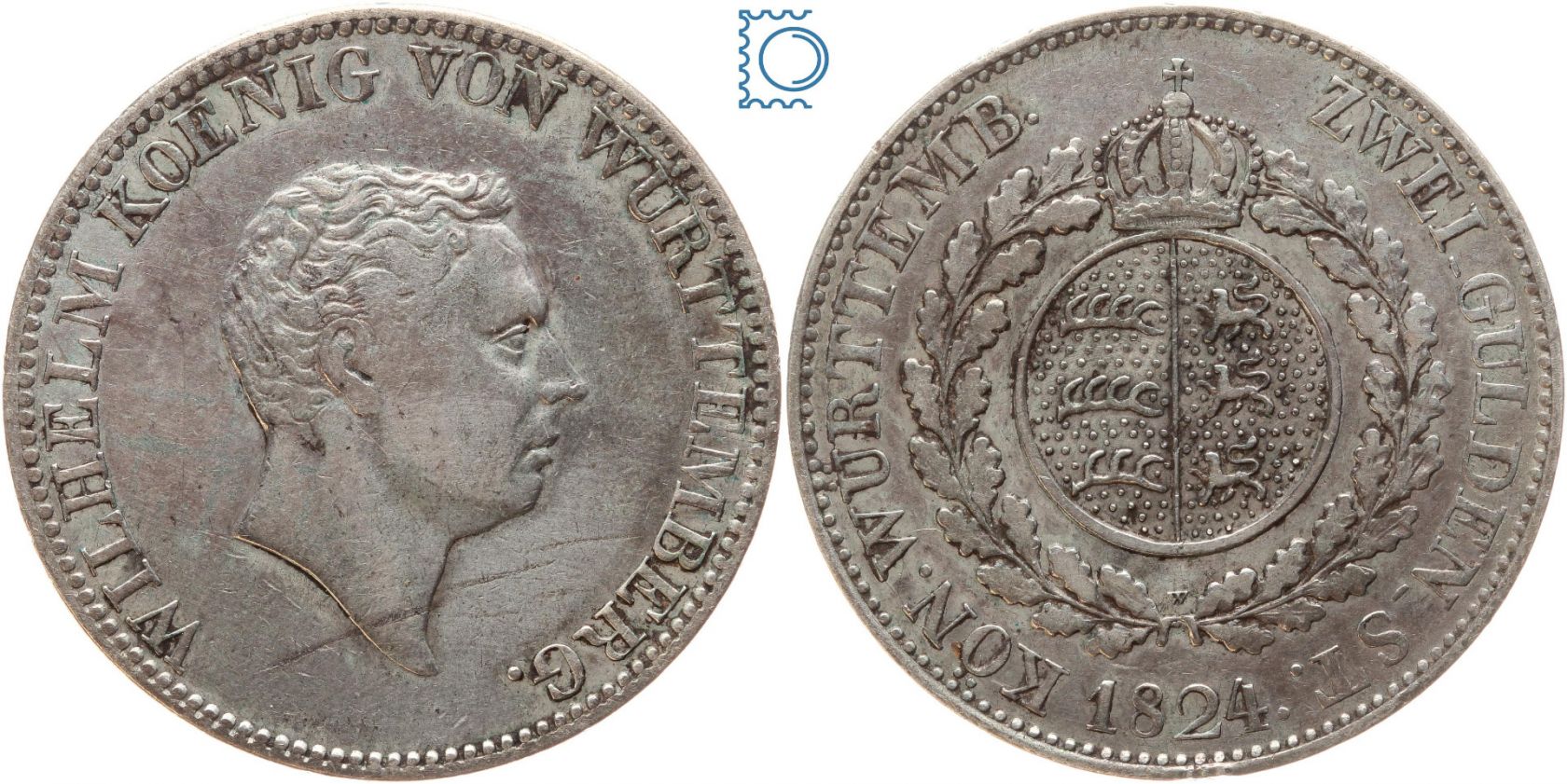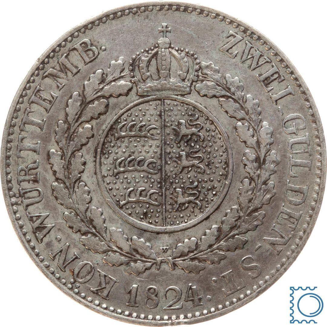 Württemberg, König Wilhelm I., Zwei Gulden 1824, J. 48, AKS 79