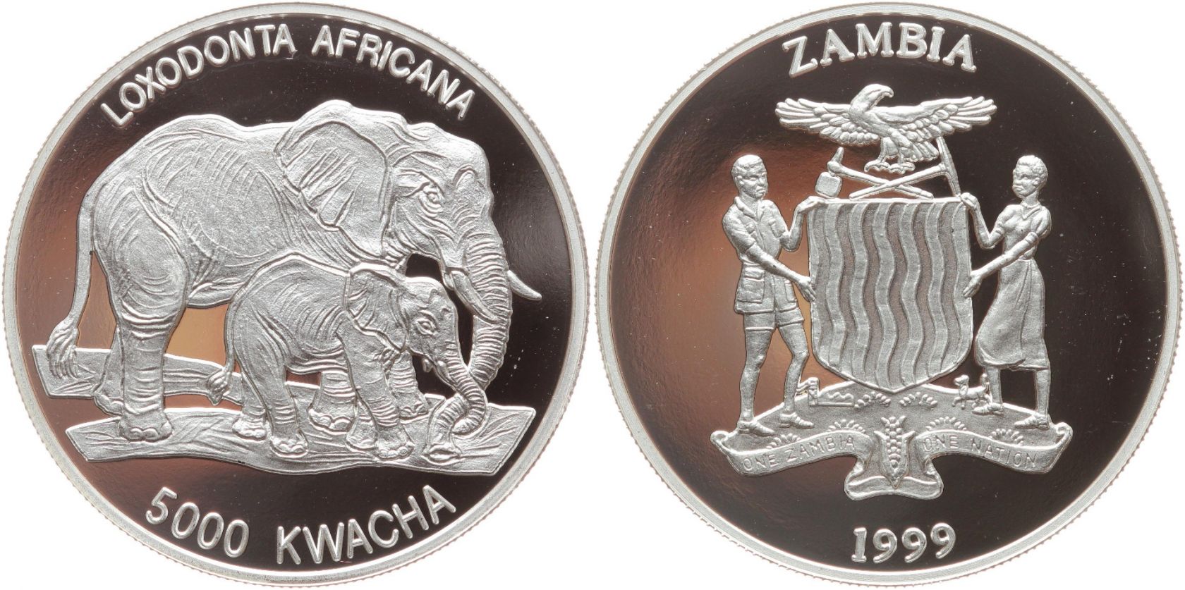 Zambia / Sambia 5000 Kwacha 1999 - Elefanten - Proof PP