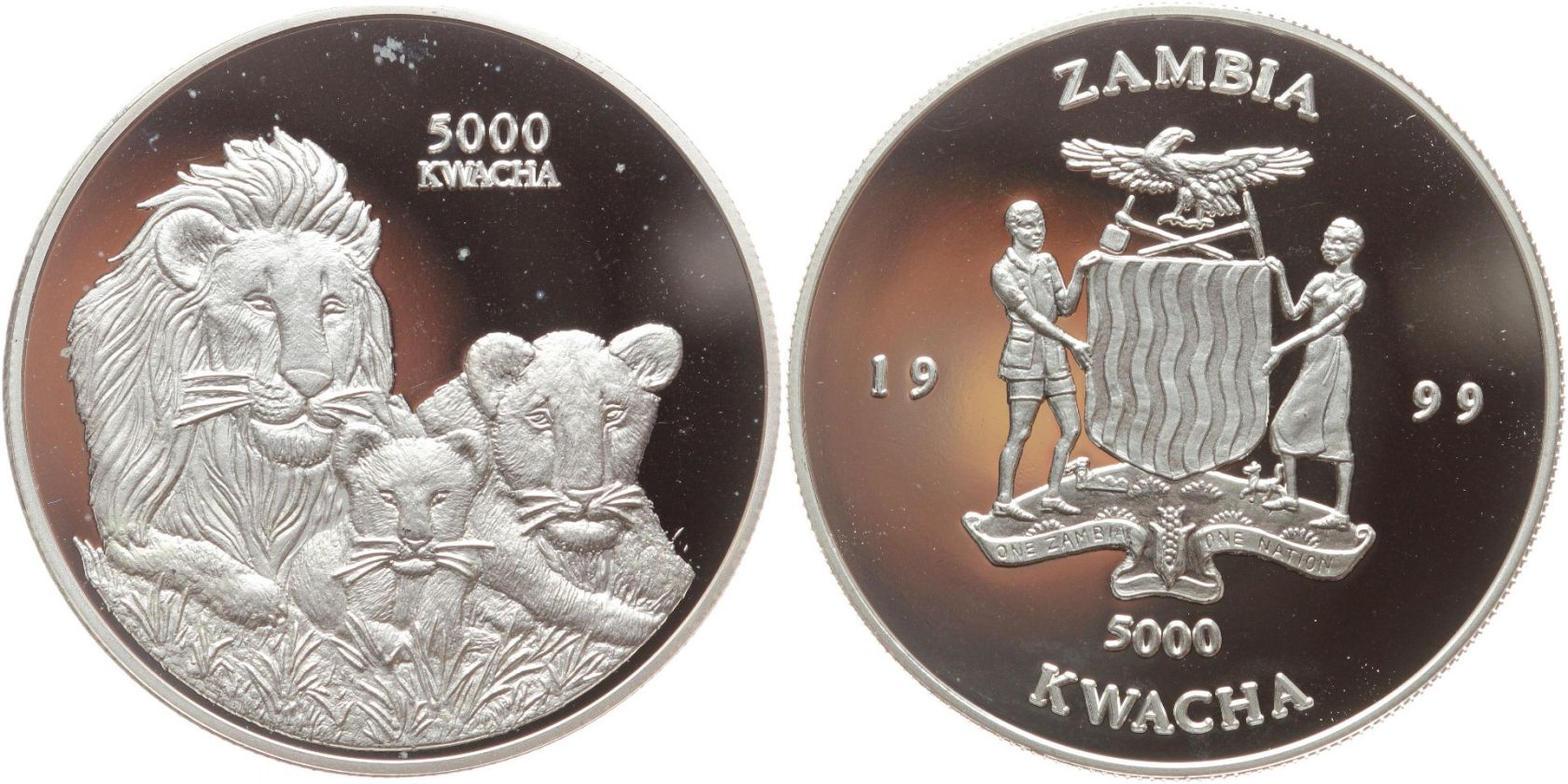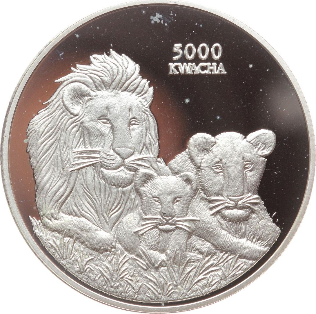 Zambia / Sambia 5000 Kwacha 1999 - Löwen - Proof PP